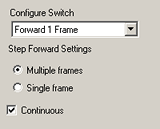 This item is displayed only when [Forward 1 Frame] is selected in [Configure Switch]. While pressing the switch, specify whether to continuously forward a movie frame by frame.