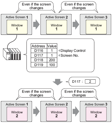 If a switch calls an undefined Window number, the Window is not displayed. If another Window displays, it remains on the screen. Also, only one Window appears at a time. If a Window displays, it is closed before another Window appears.