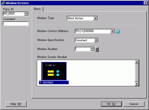 Double-click the Window part placed. The setting dialog box appears. Select [Word Action] from [Window Type].