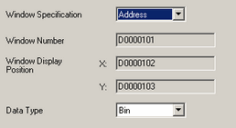 Set the window number you want to display in [Window Number] address (D101), and the display coordinates in the [Window Display Position] address (D102, D103) to turn ON bit 0 for the [Window Control Address](D100).