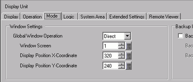 Set the [Window Screen] to "1". Set the [Display Position X-Coordinate] and [Display Position Y-Coordinate] of the Window on the Base screen.