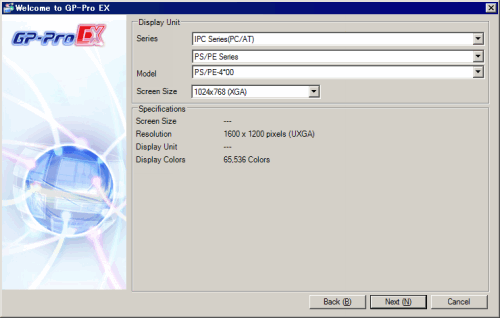 In the [Display Unit] group, from the [Series] field select [IPC Series (PC/AT)] and the type of display unit.