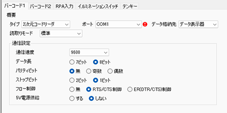 2次元コードリーダを接続する場合の設定です。