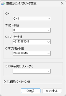 パラメータ変更の対象となる高速カウンタのONプリセット値を指定します。ここで指定された値を#L_HSC*_ONPに格納します。