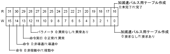 加減速パルス出力中に加減速パルス用テーブル作成は行えません。加減速パルス出力中に命令を実行するとエラーになります。