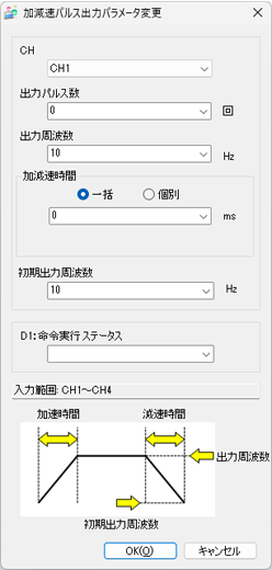 加速時間(ms)を指定します。ここで指定された値を#L_PLS*_ACCに格納します。LT4000シリーズ使用時に[個別]を選択すると設定できます。 |