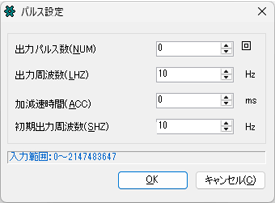 [パルス設定]ダイアログボックスの[加減速時間]から指定します。