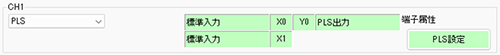 [プロジェクト]メニューの[システム設定]-[I/Oドライバ設定]をクリックし、[内部ドライバ1]画面で[PLS設定]をクリックします。