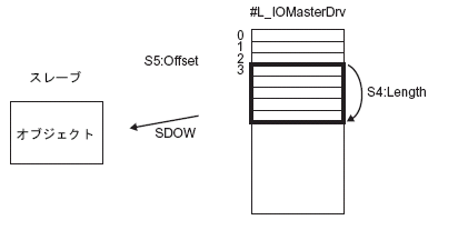 下位16ビットは、システム変数 #L_IOMasterDrv[0]~[255]の配列の要素番号を指定すると、そこを先頭にS4で指定したByte数分のデータが指定したオブジェクトに書き込まれます。