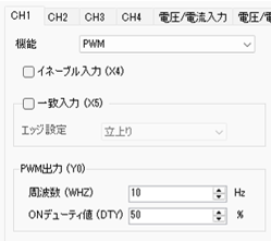 [プロジェクト]メニューの[システム設定]-[I/Oドライバ設定]をクリックし、[機能]で[PWM]を選択します。