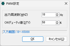 [PWM設定]ダイアログボックスの[出力周波数]から指定します。