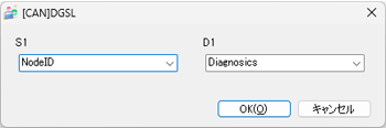 ロジック画面(MAINまたはSUB)を開き、行の上で右クリックして[命令の挿入(I)]を選択します。をクリックして[9. I/Oドライバ命令]-[CAN]-[DGSL](スレーブ側の状態読み出し命令)を選択します。
