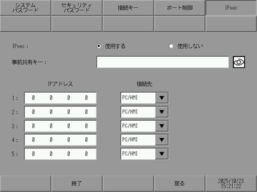 IPsecを使用するかどうかを選択します。初期値は[使用しない]です。