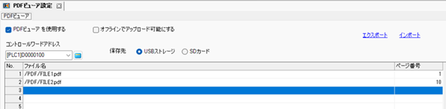 [コントロールワードアドレス]にPDF表示をコントロールするアドレス(例: D0000100)を設定します。