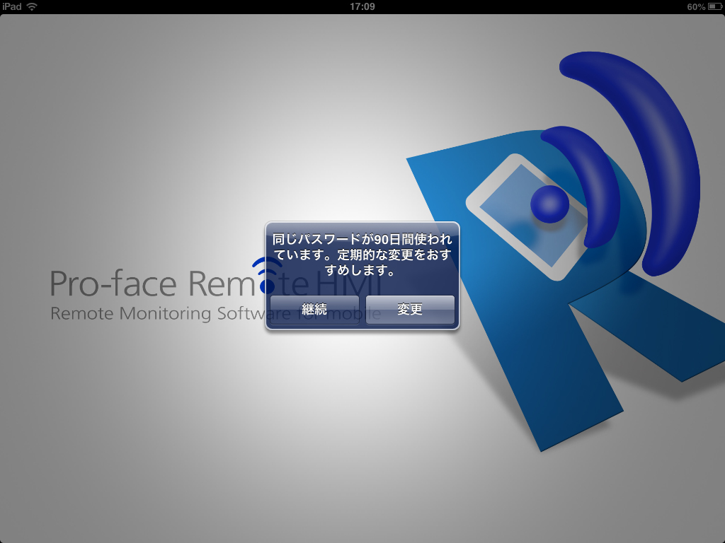 - 起動パスワードが90日間同じパスワードだった場合以下のメッセージが表示されます。