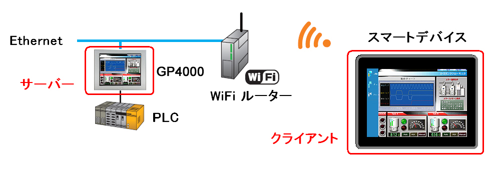 サーバーとはPro-face Remote HMI機能を使用するうえで、クライアントに対して画像データを配信する表示器(GP)を指します。