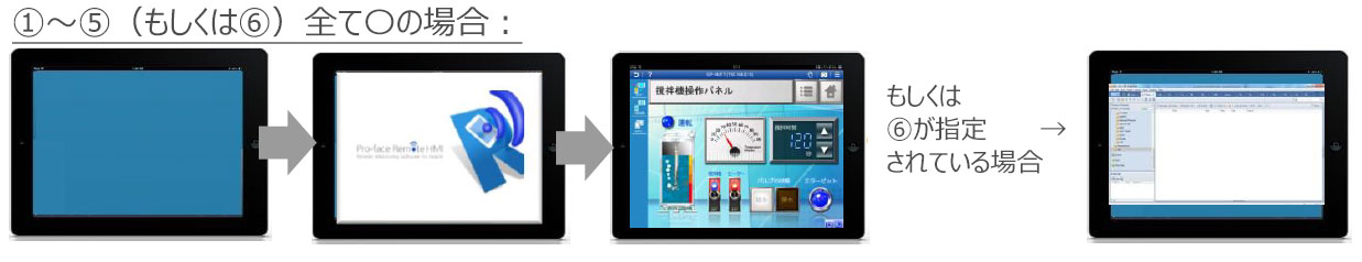 3. Pro-face Remote HMI Serverを設定している場合でも⑥を記載しなかった場合は⑤に記載のIPアドレスがWinGPの場合はWinGPの画面を表示します。