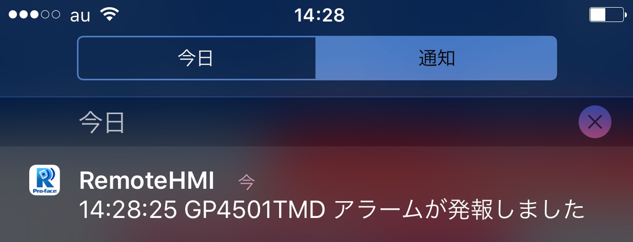 クライアント側でアラームの発生を検知した場合は通知センターにメッセージを表示します。