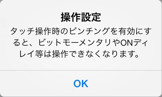 タッチ操作時のピンチング許可の設定をOFF→ONにした場合以下のメッセージが表示されます。