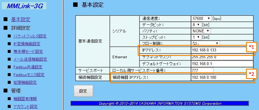 設定の詳細については、安川情報システム株式会社の手順書をご参照ください。