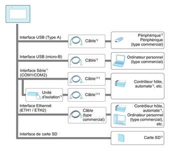 *3 Pour plus d'informations sur comment connecter les contrôleurs et autres types d'équipement, reportez-vous au manuel de pilote de périphérique correspondant de votre logiciel d'édition d'écrans.