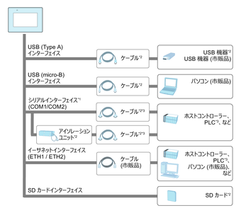 *3 各種ホストなど接続相手との接続方法については、ご使用の画面作成ソフトウェアの機器接続マニュアルをご確認ください。