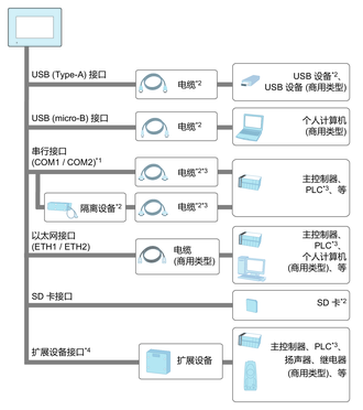 *3 若要了解关于如何连接控制器和其他类型设备的信息,请参阅画面编辑软件的相应设备驱动程序手册 (软件内自带)。