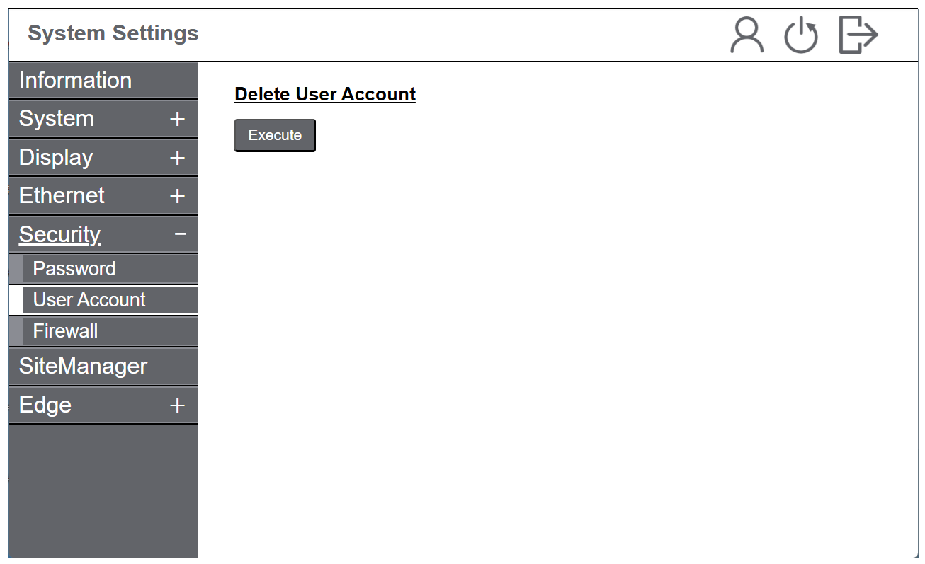 - Wählen Sie im Menü die Optionen Security > User Account.