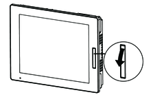 - Legen Sie Ihren Finger oder ein geeignetes Werkzeug (z.B. Schraubendreher) in die Öffnung der USB-Abdeckung, und ziehen Sie diese gemäß Abbildung nach außen.