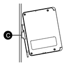 - Bringen Sie die im Paket enthaltene DIN-Schienenbefestigung am Produkt an. Führen Sie die beiden Vorsprünge der DIN-Schienenbefestigung in die Löcher auf der Rückseite des Geräts ein. Befestigen Sie sie dann mit den vier mitgelieferten M4-Schrauben. Das erforderliche Anzugsdrehmoment beträgt 0,7 N•m (6,2 lb-in).