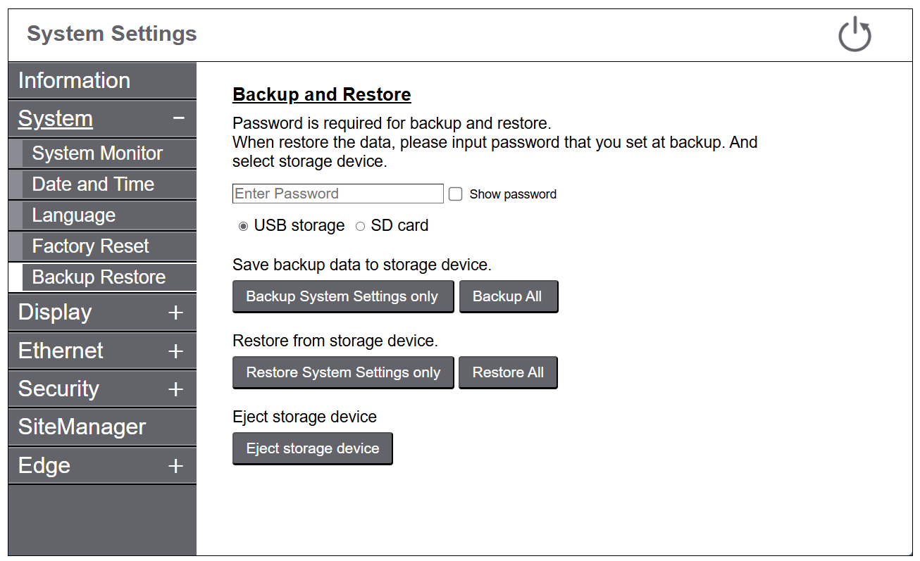 - 메뉴에서 System > Backup Restore를 선택합니다.