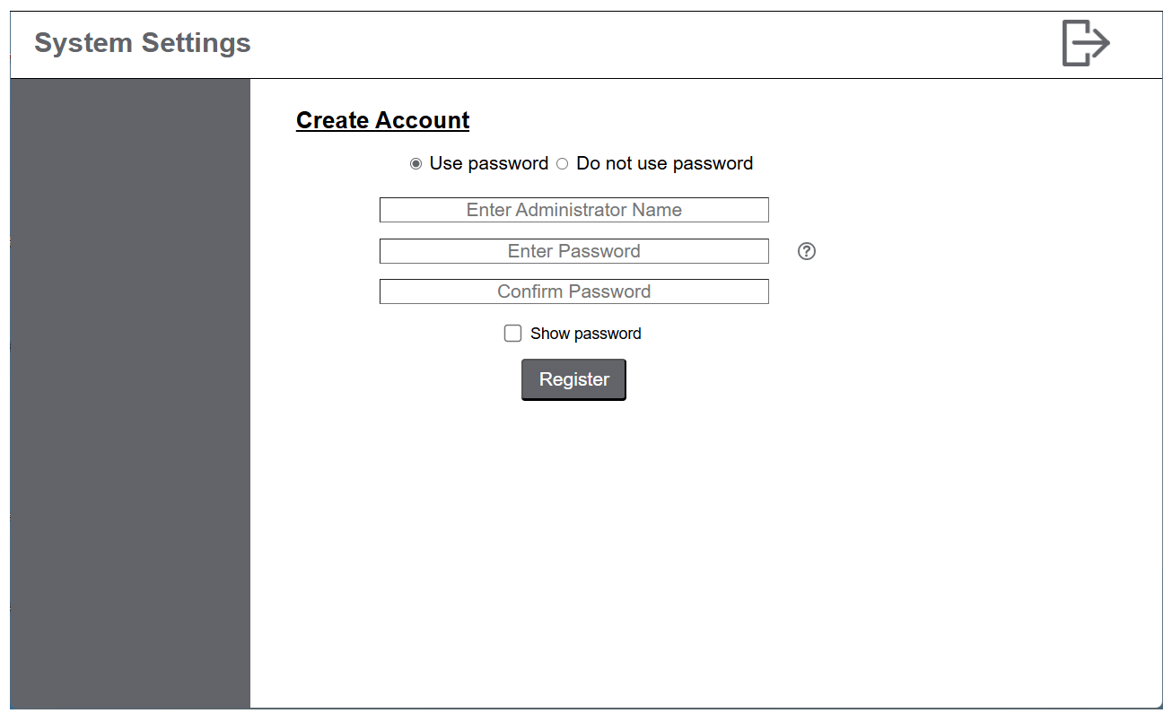 - Se muestra la pantalla Create Account. Introduzca el nombre de usuario y la contraseña para volver a crear la cuenta de administrador.