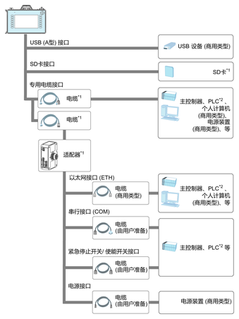 *2 要了解如何连接控制器和其它类型的设备,请参阅画面编辑软件的相应设备驱动程序手册。