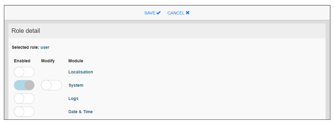 - Set the necessary access rights in accordance with the role and touch SAVE.
