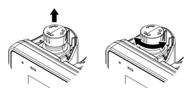 Pour déverrouiller le commutateur, le tirer vers le haut ou le tourner dans le sens de la flèche.