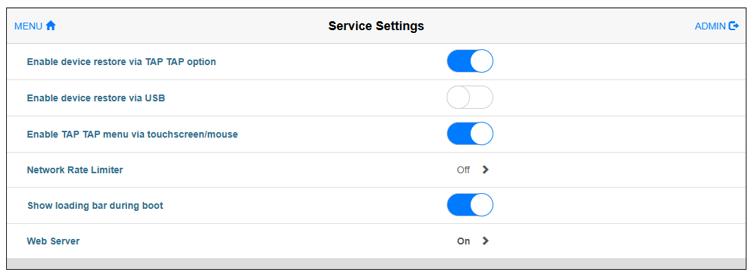 | Enable TAP TAP menu via touchscreen/mouse |