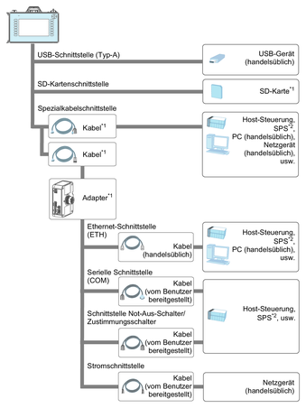 *2 Informationen zum Anschluss von Steuerungen und anderen Geräten erhalten Sie im entsprechenden Gerätetreiber-Handbuch Ihrer Bildschirmbearbeitungs-Software.