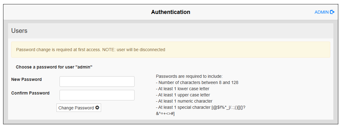- Compare la schermata di Authentication. Impostare la password di account utente amministratore.NOTA: