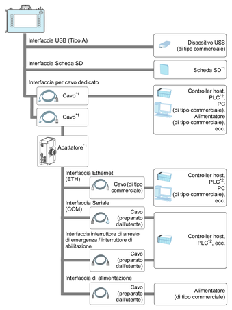 *2 Per informazioni per collegare i controller ad altri tipi di apparecchiature, fare riferimento al manuale del driver del dispositivo corrispondente del software di programmazione.