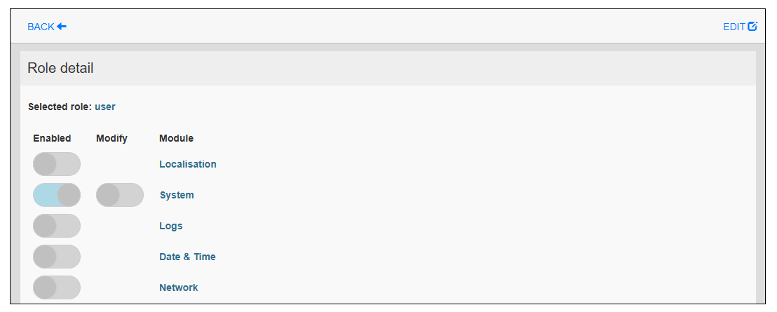 - Role detail が表示されたら、画面右上の EDIT をタッチします。