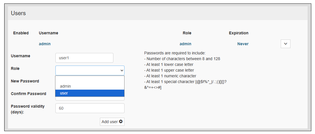 管理者権限を持つユーザーは、追加のユーザーアカウントを登録し、その役割を定義することができます。管理者ユーザーは、System Settings の機能にアクセスするための権限を、ユーザーの役割に応じて割り当てることができます。