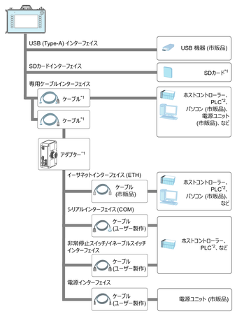*2 各種ホストなど接続相手との接続方法については、ご使用の画面作成ソフトウェアの機器接続マニュアルをご確認ください。