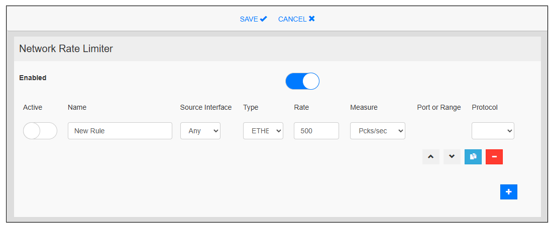 네트워크 인터페이스를 통해 전송되는 패킷의 최대 수를 제한하는 규칙을 만들려면 사용하도록 설정합니다. 특정 시간 내에 전송할 수 있는 요청 수를 제한하면 네트워크 과부하 방지에 도움이 됩니다. 또한 DDoS 공격 및 스팸과 같은 의도하지 않은 과도한 트래픽을 억제하는 사이버 보안 조치로도 효과적입니다.
