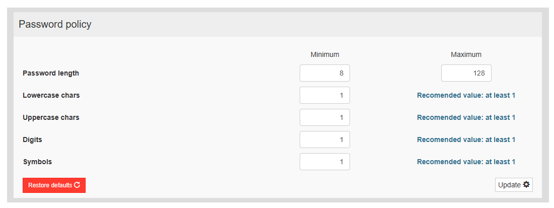 이 기능으로 사용자는 사용자 지정 암호 규칙을 정의할 수 있습니다.