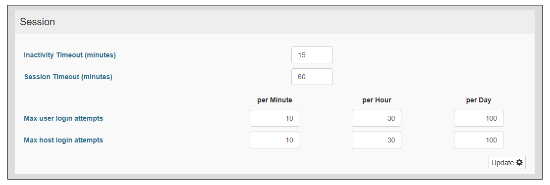 | Session Timeout (minutes) |