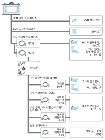 *2 컨트롤러 및 기타 유형의 장비 연결 방법에 대한 정보는 화면 편집 소프트웨어의 해당 장치 드라이버 설명서를 참조하십시오.