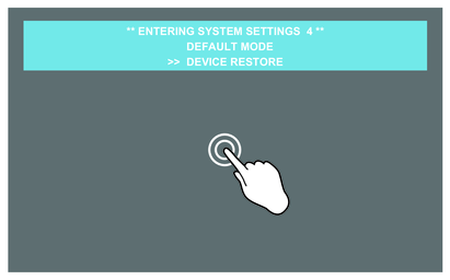 4. El menú Tap-Tap cambiará automáticamente. Para seleccionar "DEVICE RESTORE", mantenga el dedo presionado sobre la pantalla durante 5 segundos.