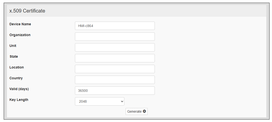 - Complete los parámetros necesarios, luego toque el botón Generate para generar un certificado autofirmado con sus datos.