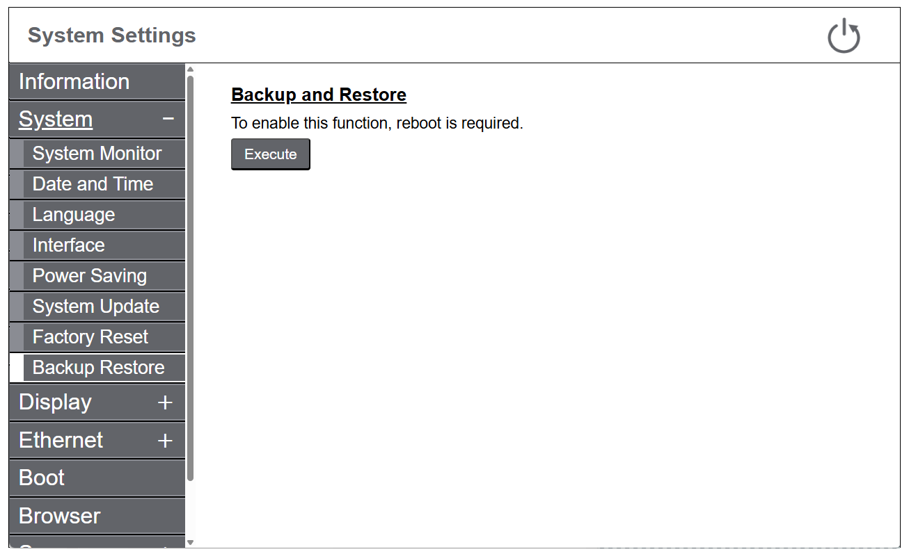 Sauvegardez les données du produit sur un support externe et restaurez le produit à l'aide du fichier de sauvegarde sur le support externe. Seul un compte administrateur peut exécuter cette fonction.