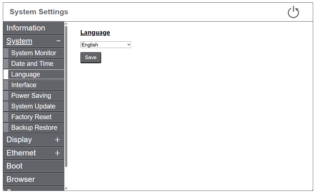 Wählen Sie die Sprache der Benutzeroberfläche für die Systemeinstellungen aus.